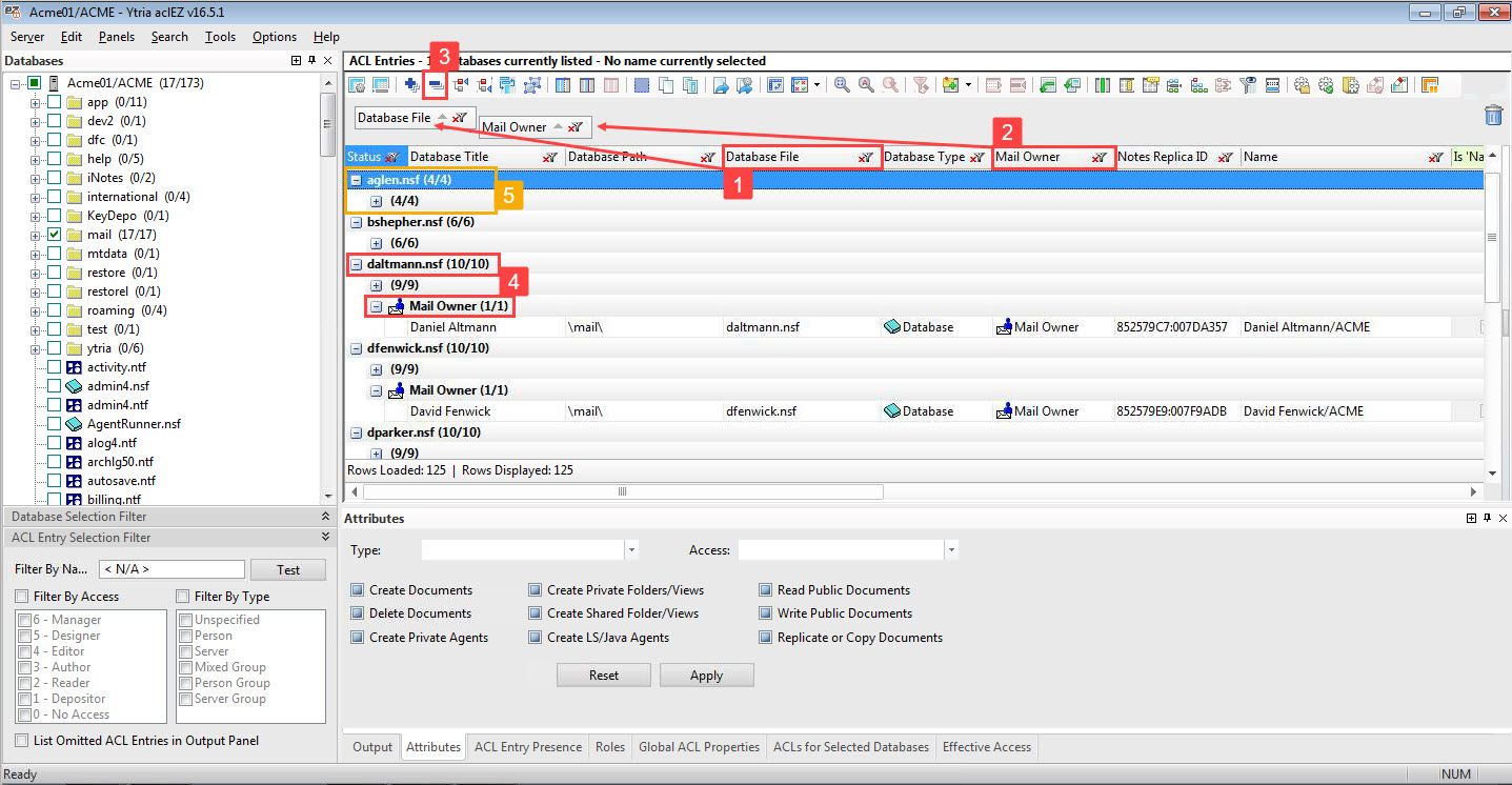A aclEZ offers a quick-and-easy solution to this problem. Only two groupings to do and you'll see who is the mail owner is for all mail files on a server! Here's what to look for.