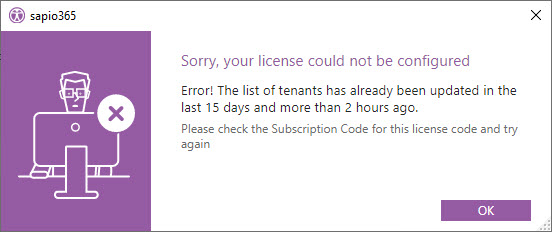 The number of users allocated to a tenant will be compared to the effective number of Microsoft-licensed users in the tenant. This number will have to be equal to or smaller than the number of users allocated to the tenant, or else sapio365 will refuse to operate on the tenant.