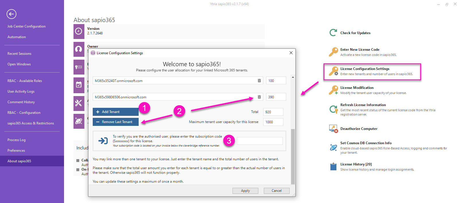 Add or remove tenants to your license