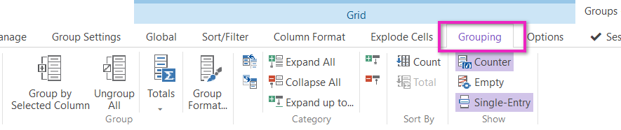The Grouping tab