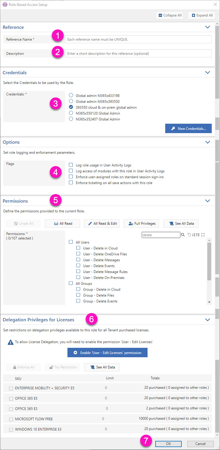 Step 6 (Optional) – Use this section if you wish to limit the number of licenses to manage. Make sure to include the license management permission by clicking on ‘Enable ‘User – Edit Licenses’ permission.