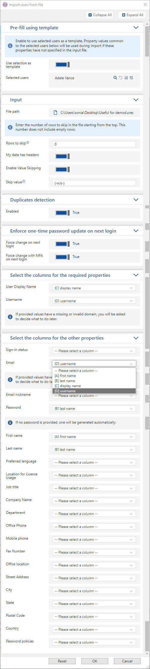 Add user accounts in bulk to Entra (Azure Active Directory) or to your local Active Directory by importing them from a CSV or Excel file. Note: Only the first sheet of a workbook is recognized.