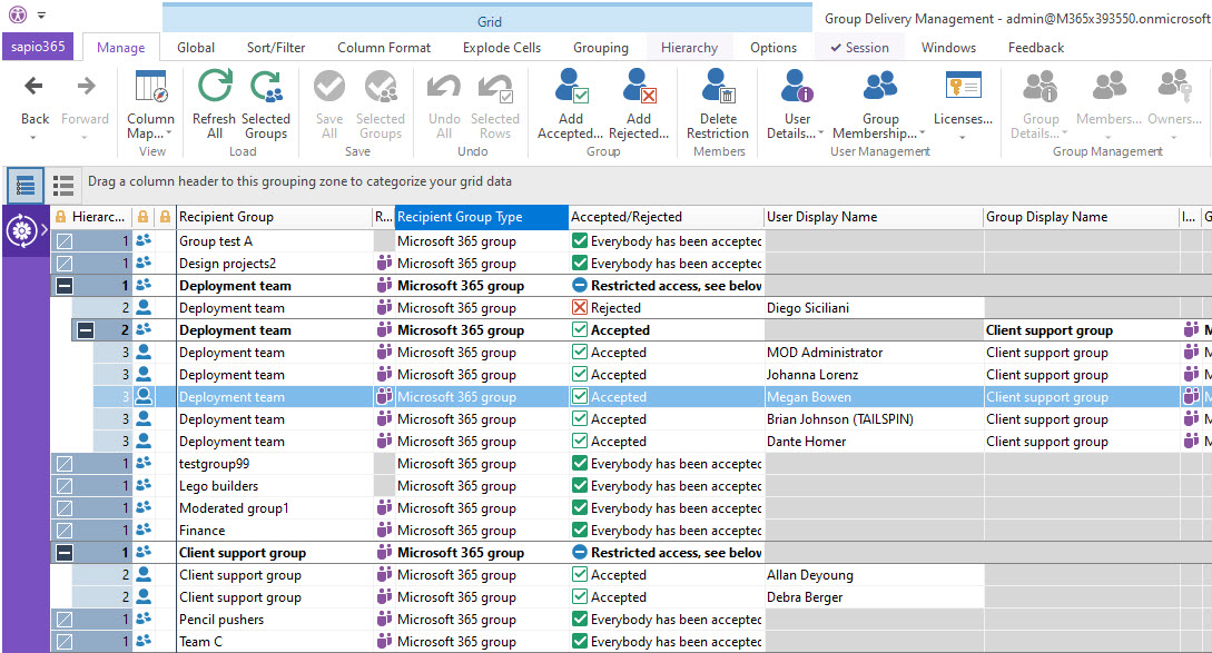 This view only applies only to Microsoft 365 groups and Teams, and lists all authorized and and rejected mail senders for the groups you have selected.