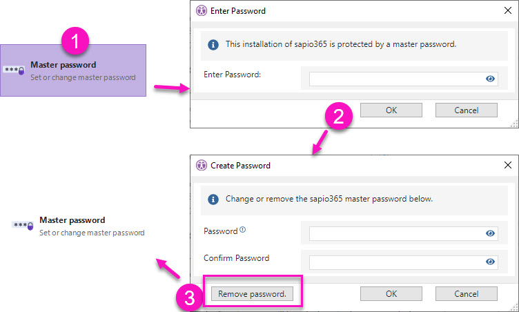 The ‘Master password’ button will become white and the small lock icon will no longer be displayed in the top right corner of every window.